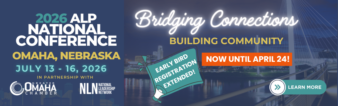 ALP is a national network of leadership programs connecting professionals that make a difference in their communities. Collectively members impact the field, sharing best practices, guiding development, and creating impact across the nation. ALP is a convenor fostering boldness and innovation that inspires others, provides educational activities that engage, educate and train leaders to advance the effectiveness of community leadership programs and professionals.
